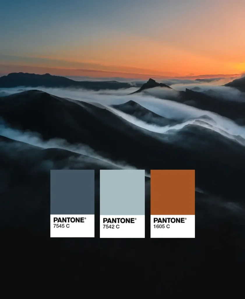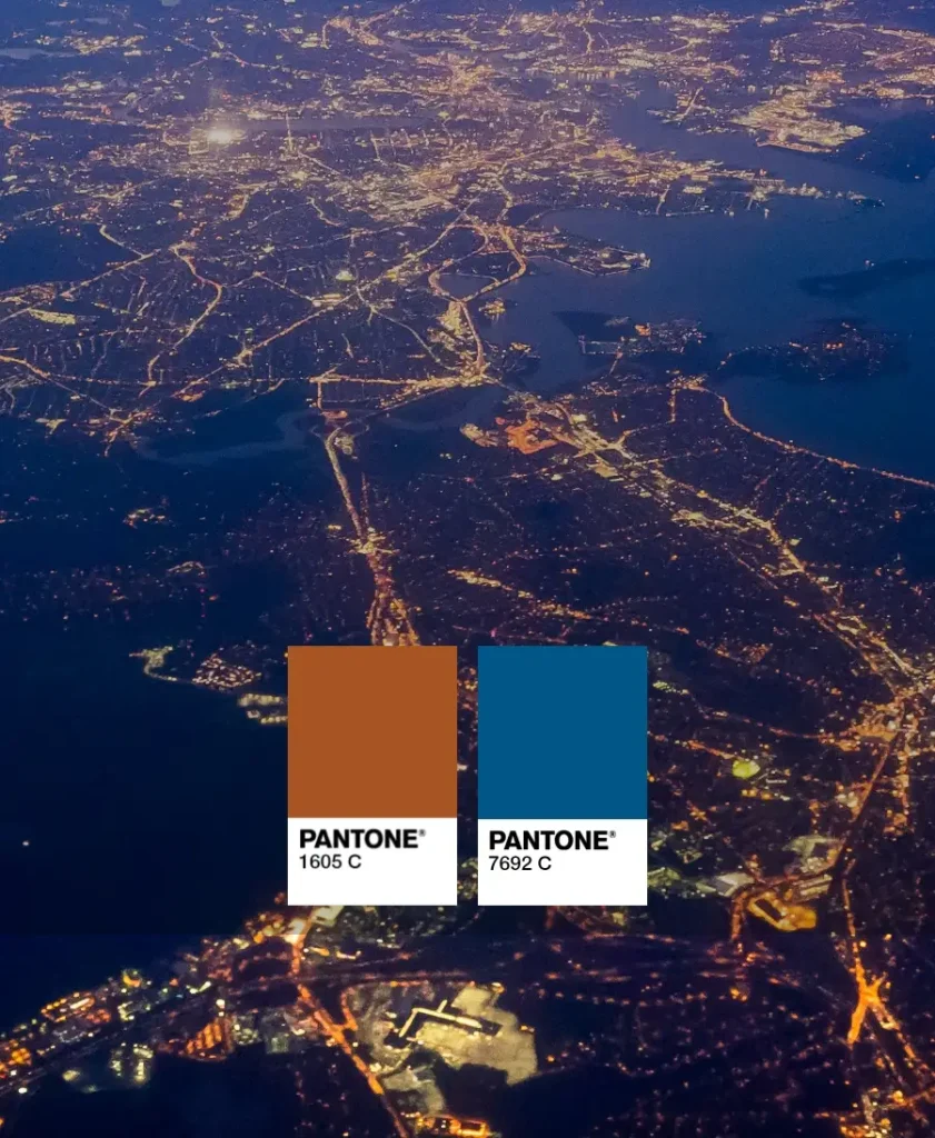 • Paleta cromática: inspirada en la vista desde un avión. El azul conecta con el cielo, mientras que el cobre aporta elegancia y evoca atardeceres y luces de ciudad.